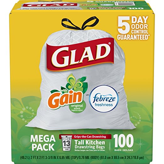 - TALL GARBAGE BAG: Prevent rips and tears with Glad’s unique design allowing bag to stretch at top while reinforced bands through middle contain bulk