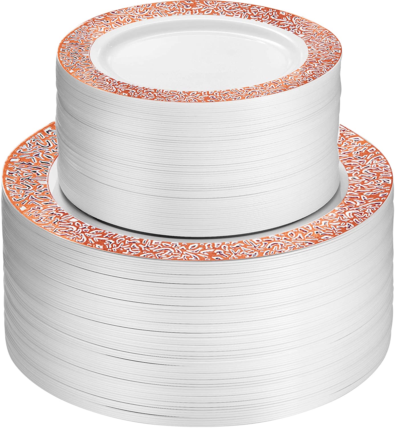 - Premium quality decorative Lace Designed rose gold trim plates made to save your time and energy, just toss the plates when you’re done, no clean-up necessary