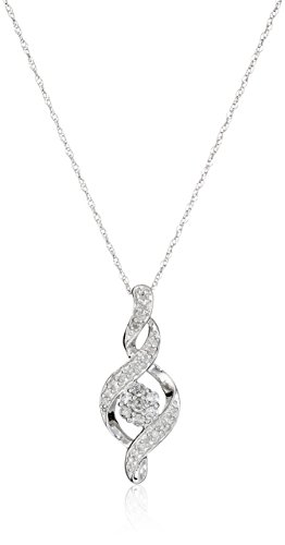 - 10k white gold necklace featuring diamond-accented twisted infinity pendant with cluster of diamonds suspended at center