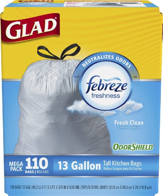 110 Count Glad OdorShield Tall Kitchen Drawstring Fresh Clean 13 Gallon Trash Bags – Link