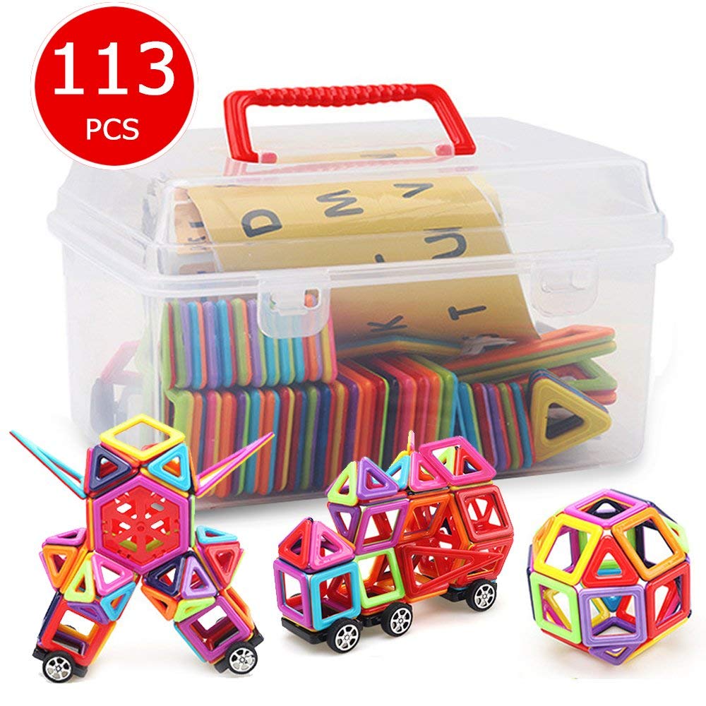 - Safe to Play with Total 113 Pieces-The magnetic building blocks sets consists of altogether 113 pcs mini construction pieces with rainbow colors and smooth corners that are made of non-toxic BPA-free ABS plastic that conforms with ASTM US safty standards.