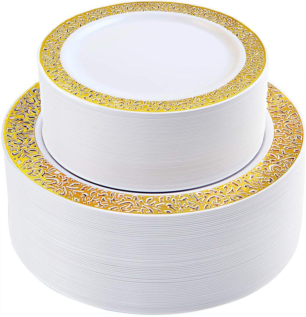 - ELEGANT DESIGN: The gold lace design surrounding the white plastic plates give them a unique depth and style that will let your guests have an unforgettable experience at your event, but take care of the lace detail is a cut out not a solid part of the plate.