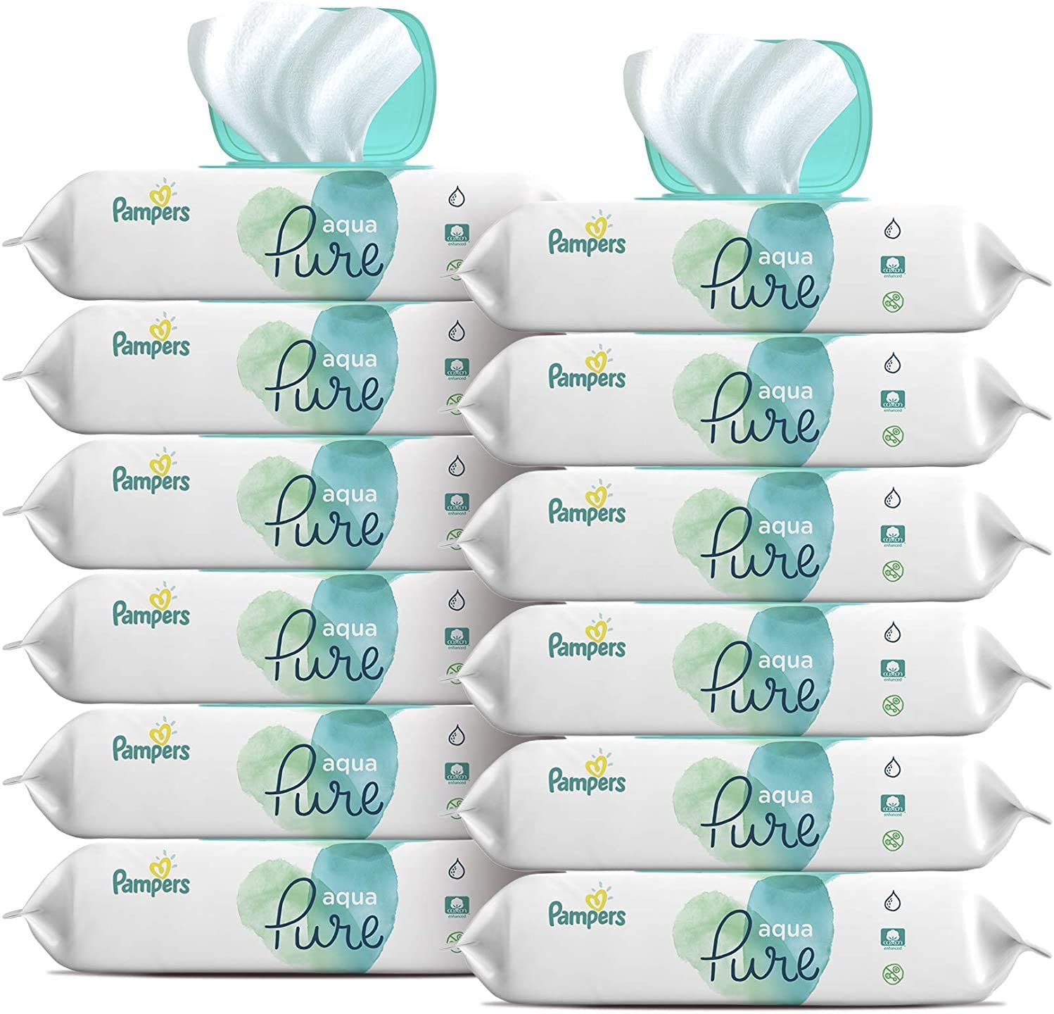 Pampers Aqua Pure Sensitive Water Baby Diaper Wipes, Hypoallergenic and Unscented, 12x Pop-Top Packs – Link