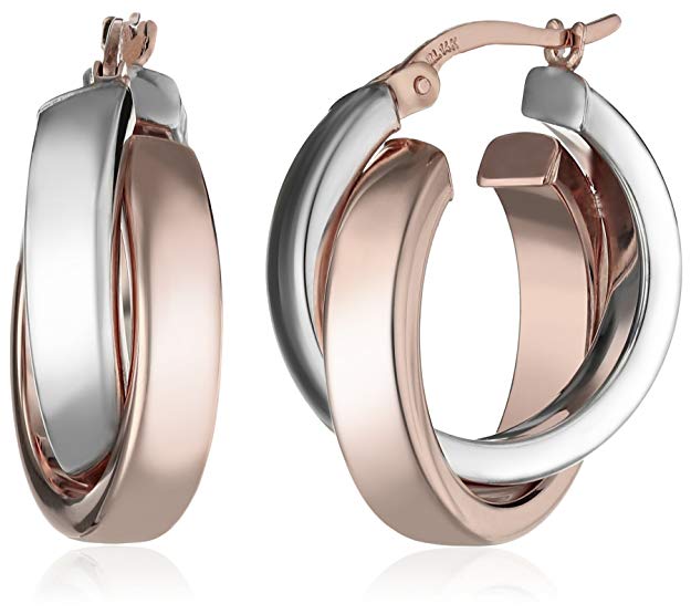14k Gold Satin Polished Crossover Hoop Earrings – Link
