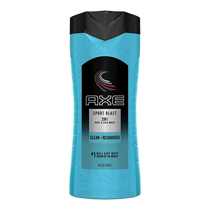 - Invigorating AXE Sport Blast 2 in 1 Body Wash and Shampoo in 16 fluid ounce bottle