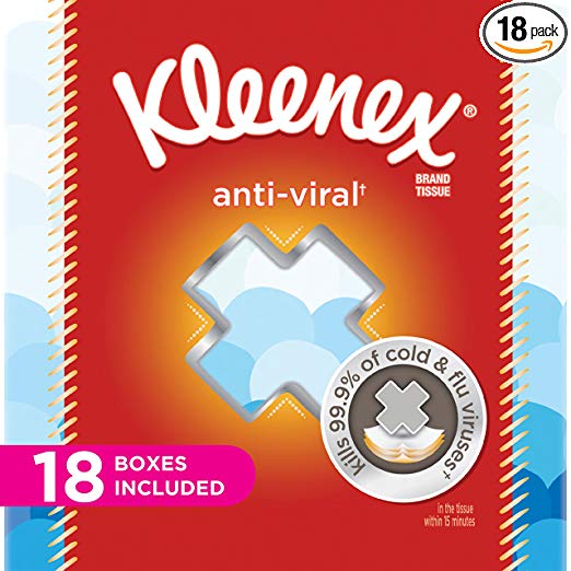 18 Boxes of Kleenex Anti-Viral Facial Tissues, Cube Box, 68 Tissues per Cube Box – Link