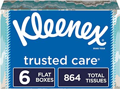 - Contains 6 flat boxes, 144 Kleenex Trusted Care Everyday tissues per pack
