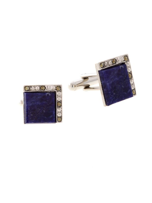 - Elegant silvertone square cufflinks with sodalite accent
