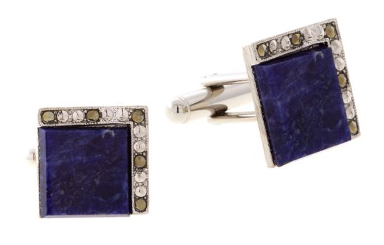 - Elegant silvertone square cufflinks with sodalite accent