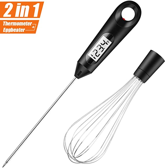- 2-in-1 Meat Thermometer & Whisk – The combination of eggbeater and thermometer is a unique combination that we are developing according to customer needs. Both the thermometer probe and the whisk are made of durable stainless steel with a highly polished finish that provides double rust protection for stainless steel.