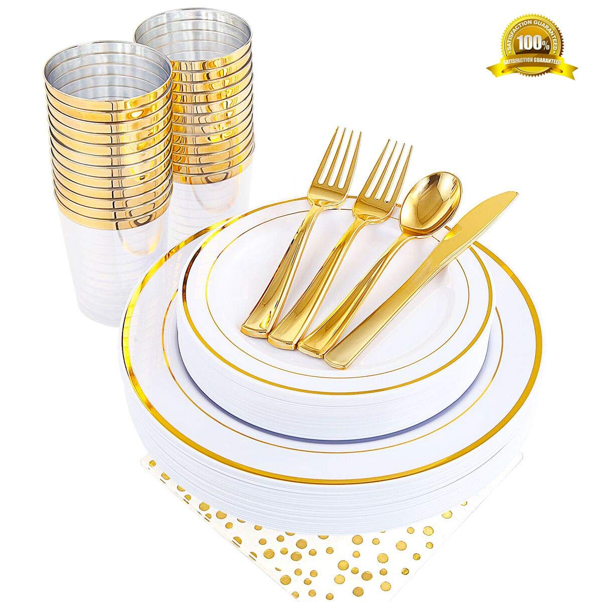 200 Piece Gold Rim Plastic Plates Dinnerware & Cups Set – Link