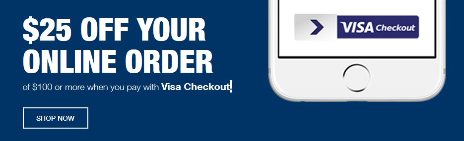 - Discount is automatically applied to qualifying order when you select Visa Checkout and order is placed.