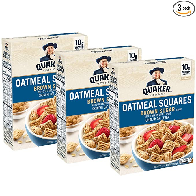 3-Pack Quaker Oatmeal Squares Breakfast Cereal, Brown Sugar, 14.5oz Boxes – Link