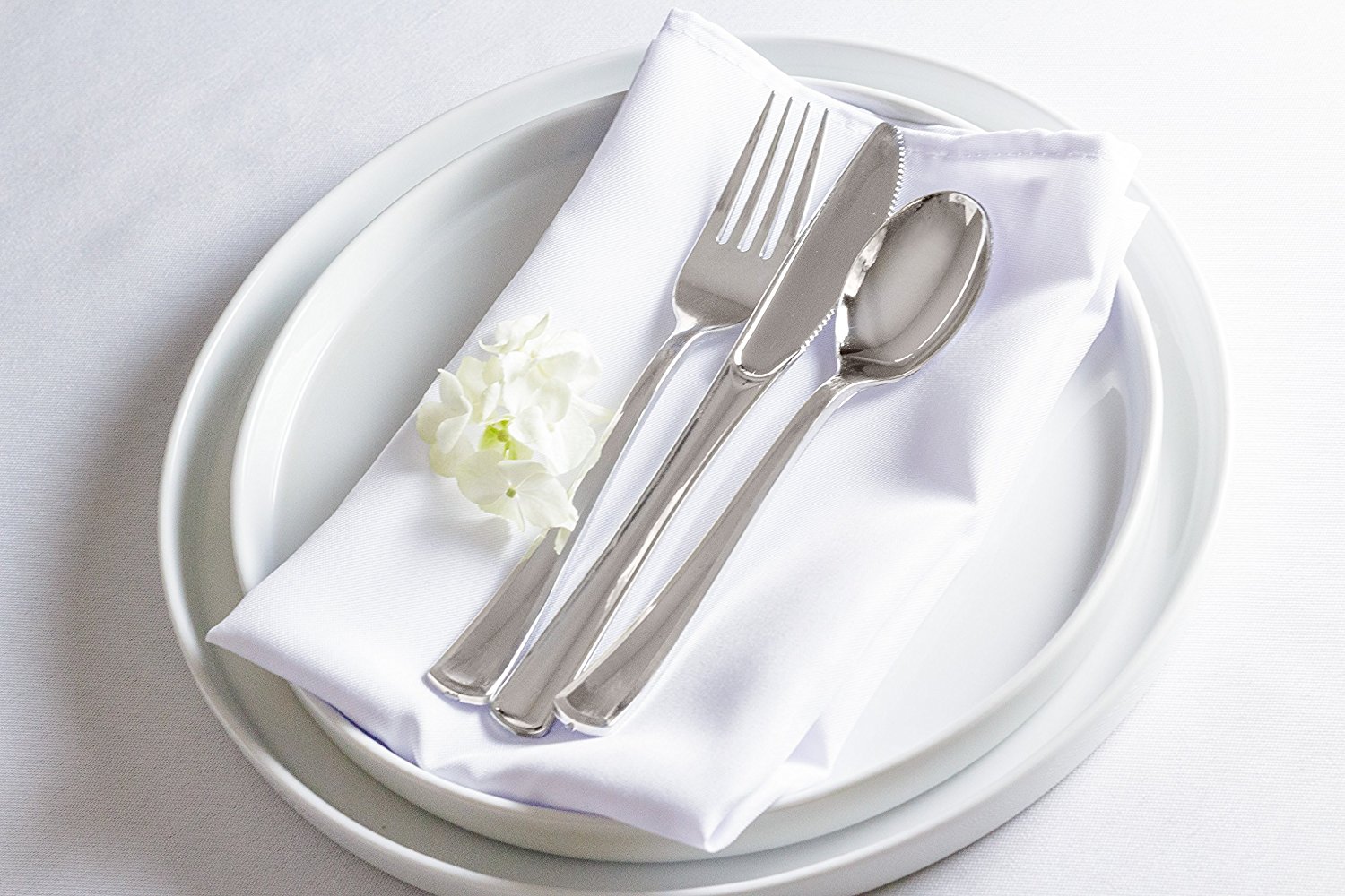 - MATERIAL: The silver disposable cutlery set is made from disposable and reusable plastic that is extremely durable, with a feel like real silverware in your hand.