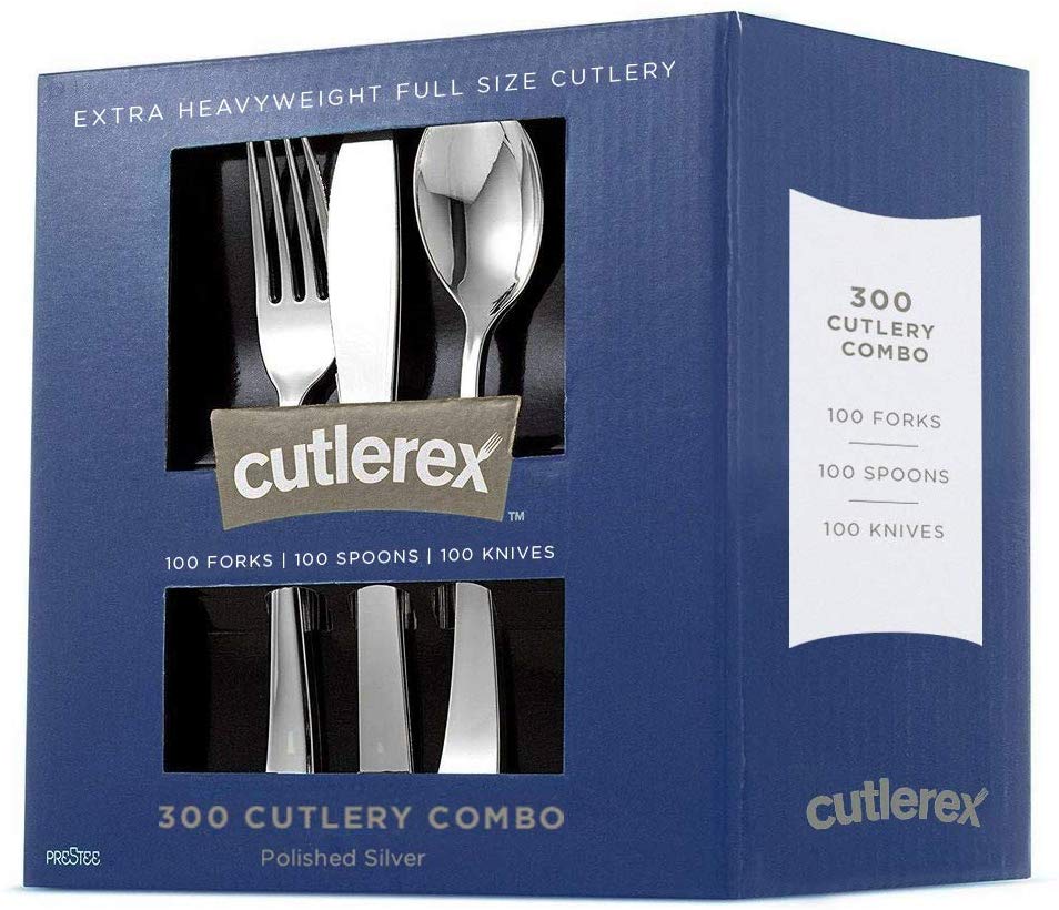 300 Piece Silver Plastic Cutlery Set – Link