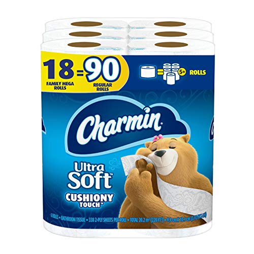 - Pack contains 18 Rolls (338 sheets per roll) of Charmin Ultra Soft Family Mega Roll toilet paper