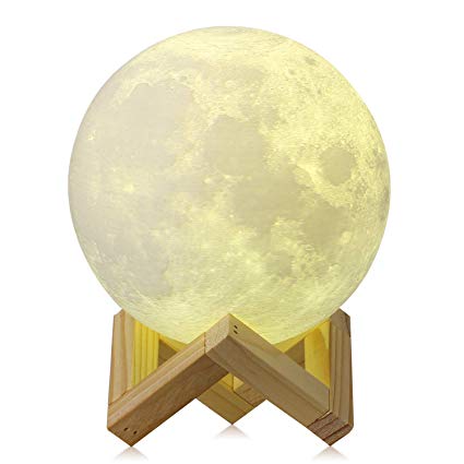 - Seamless moon lamp with the diameter is 5.8 INCH(15CM), made with 3D printing technology, realistic full moon shape, the surface of the moon lamp is very close to the lunar moon, novelty and charming.