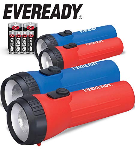 - [BATTERIES INCLUDED] Comes with 2, Eveready D batteries, and 4 AA Eveready batteries – so you have power and light when you need it! Great flashlights to keep around the house to use as emergency lights. Stay ready for power outages and storms.