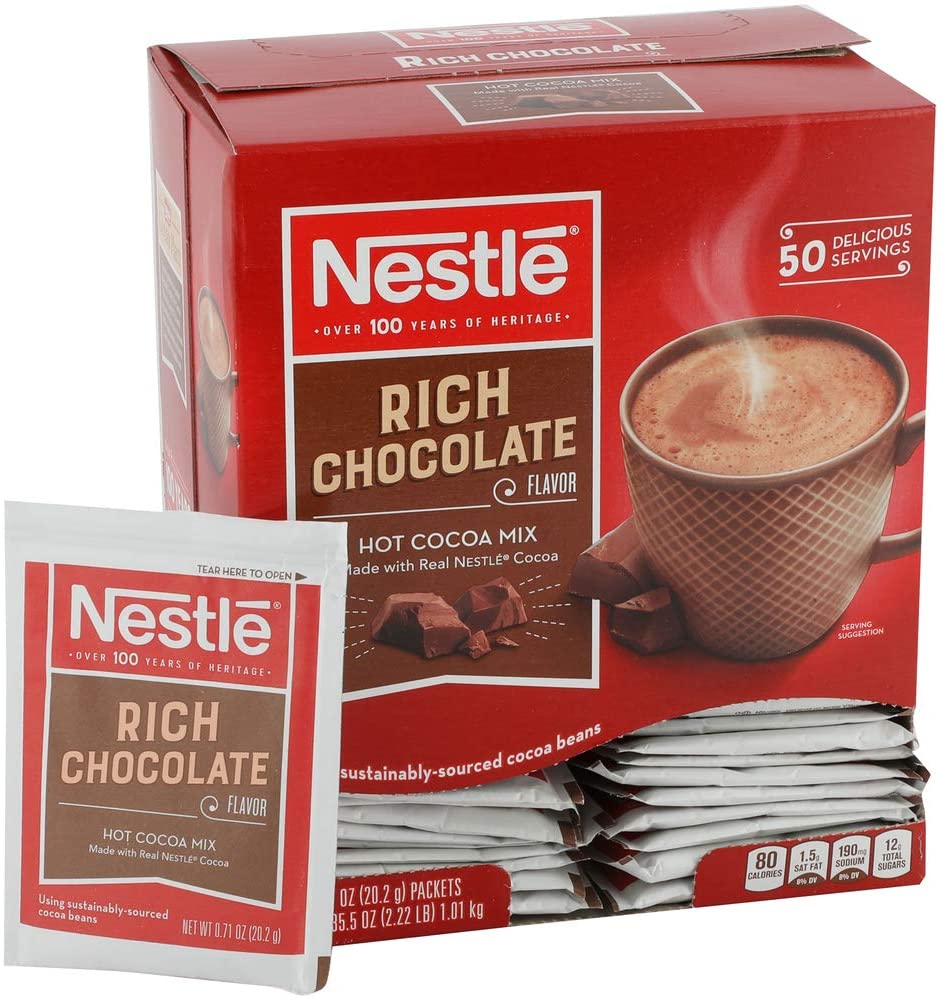 - Nestlé Hot Cocoa, Rich Chocolate Flavor is a rich tasting hot cocoa mix with vanilla notes that creates a rich and indulgent chocolate flavor. Made with real Nestlé cocoa using sustainably sourced cocoa beans