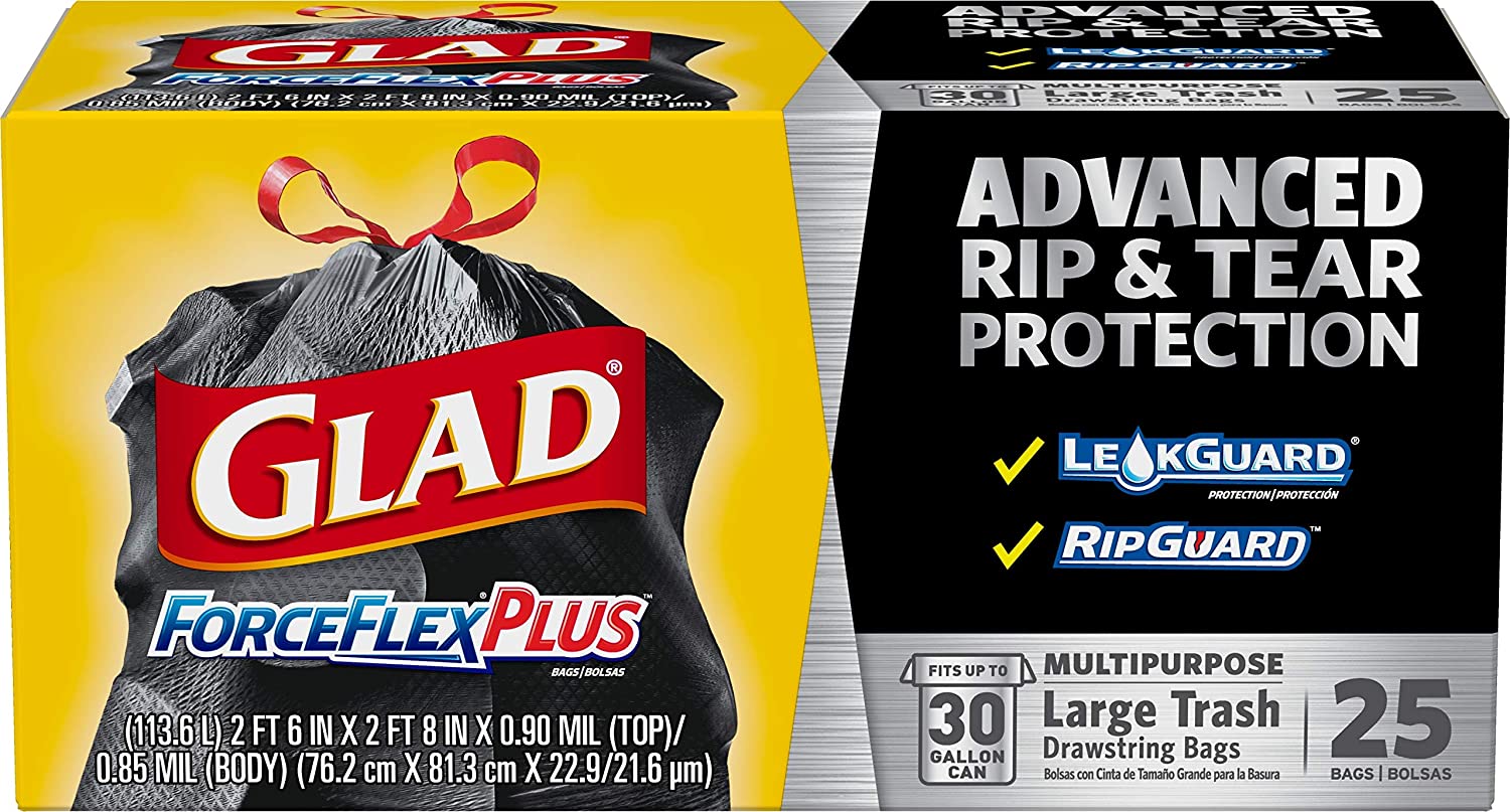 Glad Large Drawstring Trash Bags ForceFlexPlus 30 Gallon Black Trash Bag – Link