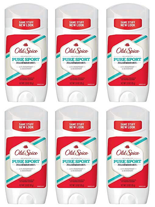 - You will receive a Pack of (6) Old Spice High Endurance Invisible Solid, Pure Sport Scent Men’s Anti-Perspirant & Deodorant 3 Oz