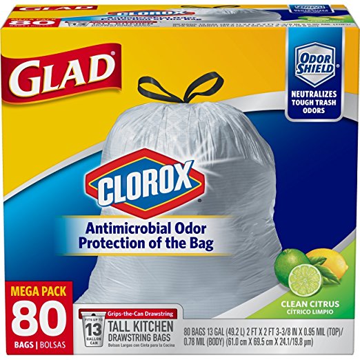 80 Count Glad Tall Antimicrobial Protected 13 Gallon Drawstring Kitchen Trash Bags Clean Citrus Scent – Link