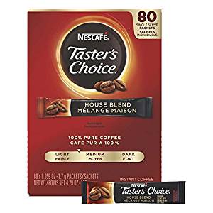 - 80 count of Nescafe Coffee, Taster’s Choice, House Blend Stick Packs
