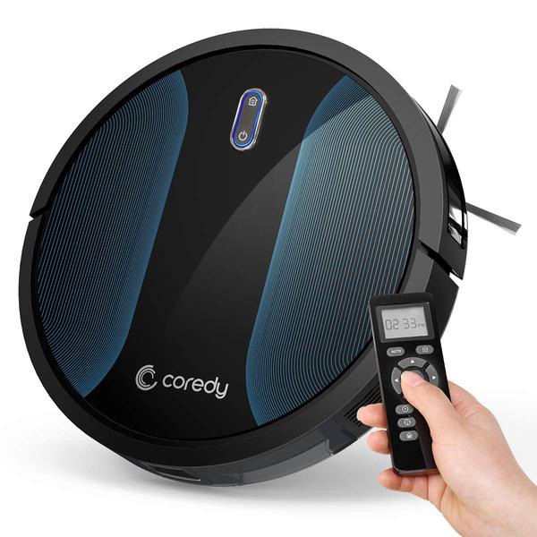 - SPOTLESS AND STYLISH: Coredy R500+ is a 2.7” super thin robot vacuum cleaner, include 3-point cleaning system and dual edge-brushes, works on hard floors and carpets, conveniently clean, schedule & customize cleaning preferences from remote control, 5 selective cleaning modes; sleek, anti-scratch tempered glass-top cover design complements your home decor