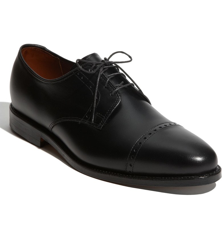 “Made with Allen Edmonds’ signature 212-step crafting process, this stylish four-eyelet blucher features perforation detailing on the cap toe and quarter, and is finished with a soft leather lining and a custom heel.”
