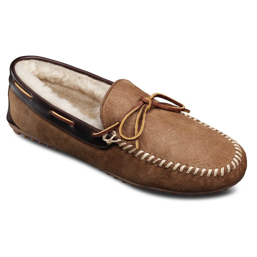 “There is nothing like sliding into your favorite pair of slippers—and the Sandman slippers promise to be just that. Made with double-faced shearling for a suede-like finish on the outside and a plush, warm interior, these slippers provide a nice mix of structure and comfort. The moccasin construction includes a whipstitch and rawhide lacing for artistry rarely seen in a slipper. A full-rubber, dimpled sole provides traction inside the house and enough protection from the elements for a quick trip outside to retrieve the mail or newspaper.”