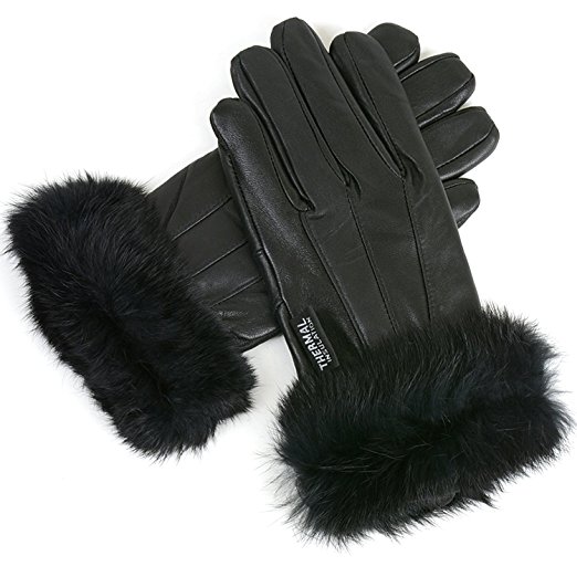 Alpine Swiss Women’s Leather Dressy Gloves Rabbit Fur Trim Cuff Thermal Lining – Link