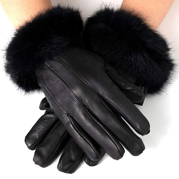 Alpine Swiss Women’s Leather Dressy Gloves Rabbit Fur Trim Cuff Thermal Lining – Link