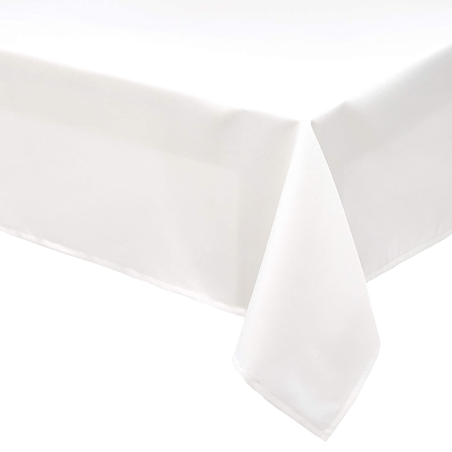 Amazon Basics Rectangle Washable Polyester Fabric Tablecloth – 90″ x 132″, White, Pack of 2 – Link
