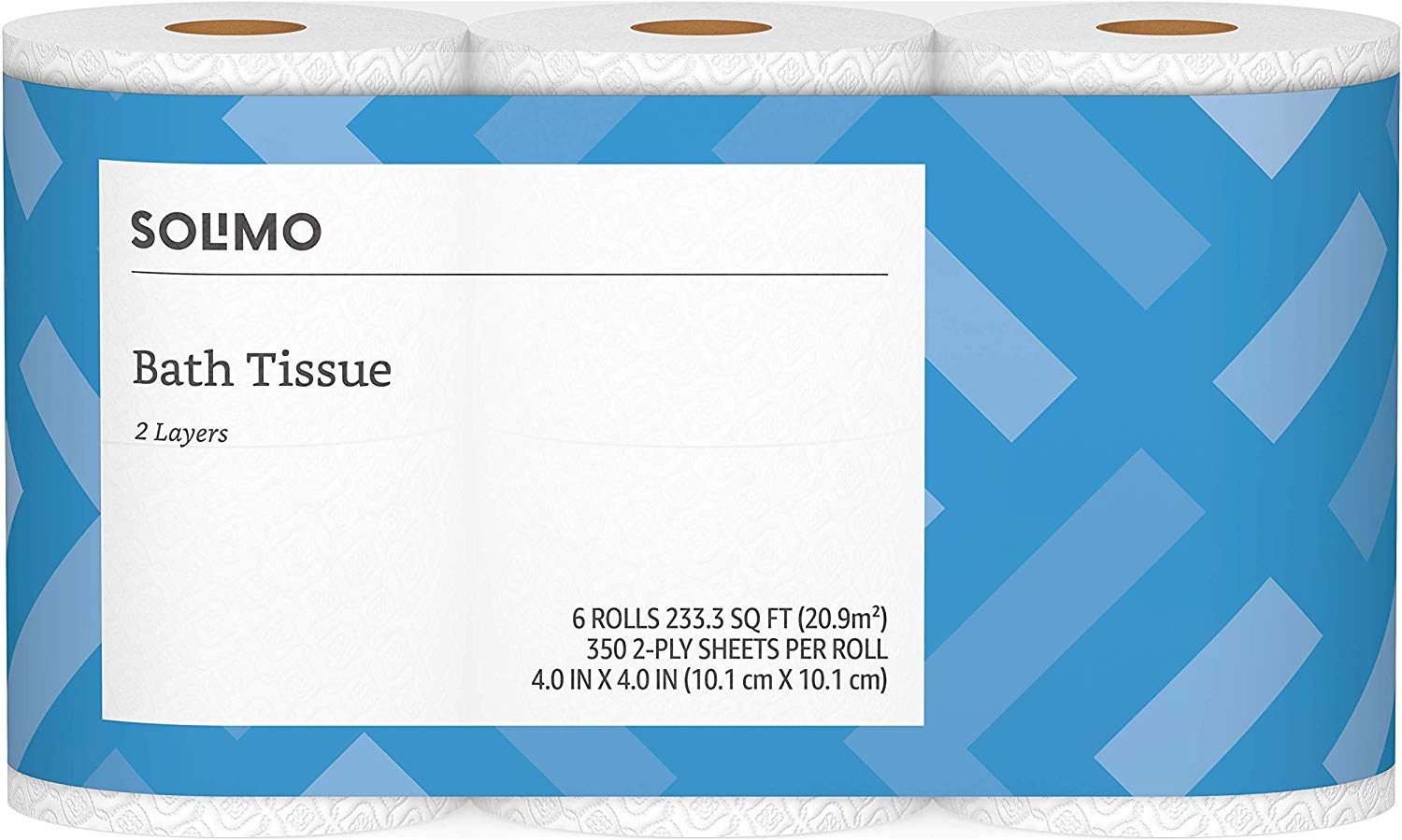 Amazon Brand – Solimo 2-Ply Toilet Paper, 350 Sheets per Roll, 6 Count – Link