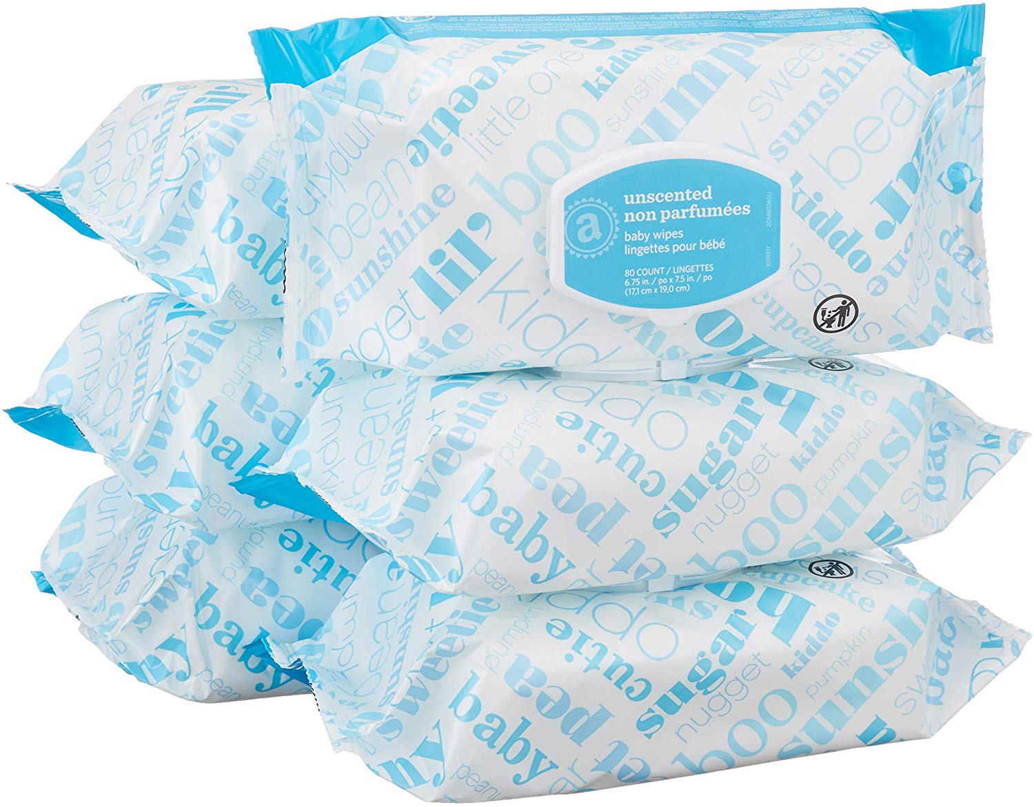 Amazon Elements Baby Wipes, Unscented, 480 Count, Flip-Top Packs – Link