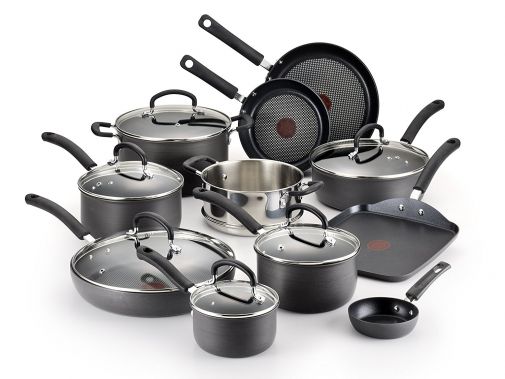 - T-fal Ultimate Hard Anodized Scratch Resistant Titanium Nonstick Thermo-Spot Heat Indicator 17-Piece Cookware Set: $127.82