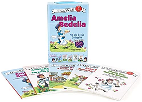 “With a brightly colored, easy-carry handle and a Velcro-tabbed cover, this little suitcase includes five Level 2 classic Amelia Bedelia I Can Read stories inside, perfect for kids who can read on their own but still need a little help.