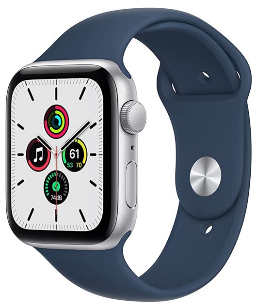 Apple Watch SE [GPS 44mm] Smart Watch w/ Silver Aluminium Case with Abyss Blue Sport Band – Link