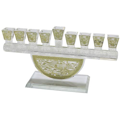 Art Judaica Crystal Chanukah Menorah Hanukkiah with Laser-Cut Metal Decoration (Gold) – Link