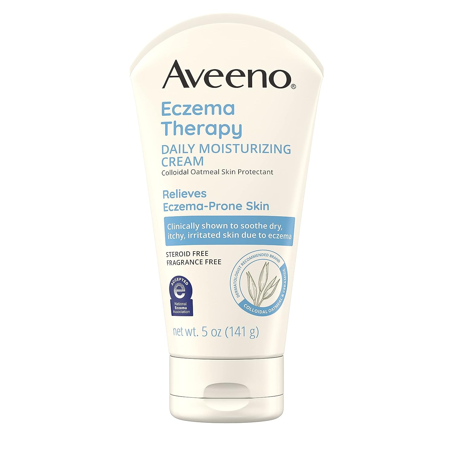 - 5 oz tube of Aveeno Eczema Therapy Daily Moisturizing Body Cream from the #1 dermatologist-recommended eczema moisturizer brand. Enriched with colloidal oatmeal & ceramide, it is clinically-proven to relieve dry, itchy, irritated skin due to eczema