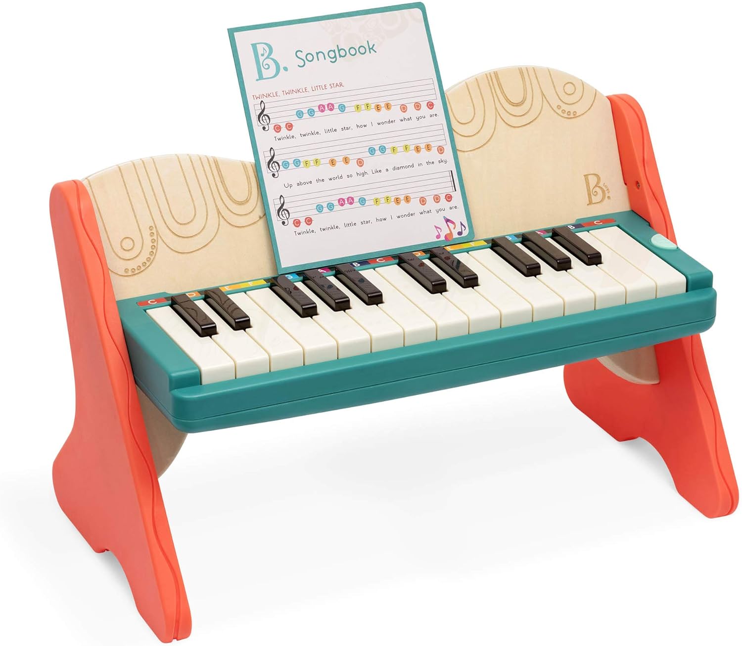 - Toddler Piano: A colorful piano that features 25 keys (2 octaves) and a Music button that plays classical compositions.