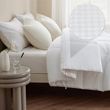 - Bedsure white comforter, patterned with embossed houndstooth, creates classic and vintage atmosphere for your room. 8 loops are offered to prevent the dual-side fluffy comforter from slipping inside the cover
