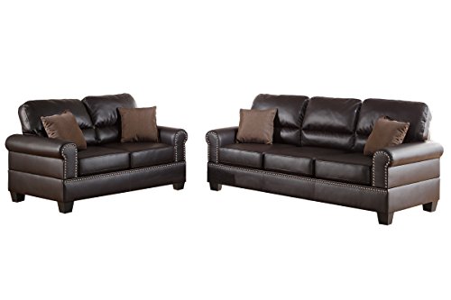 Bobkona Shelton Bonded Leather 2 Piece Sofa and Loveseat Set, Espresso – Link