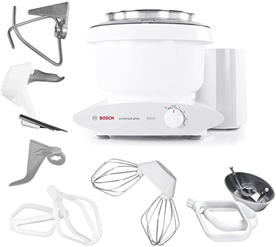 - Includes splash ring, cover, wire whips, plastic whip drive, dough hook, dough hook extender, cookie paddles, cake paddles, metal whip drive, and a bowl scraper