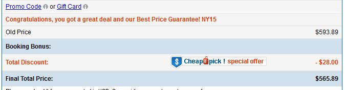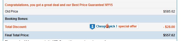 These fares are available from now through the end of March 2015. Tickets are bookable on CheapOAir, Priceline and Orbitz. If booking on CheapOAir, you can drop the total by $15 with code: NY15 If booking 4 or more tickets, you can drop the total by $40, with code: GROUP40