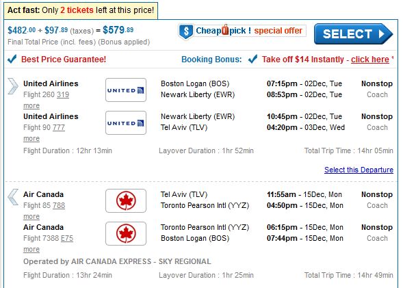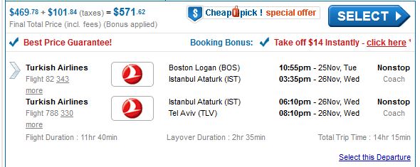 You can currently snag round-trip tickets from Boston to Tel Aviv Israel, for just $557-$572 round trip!