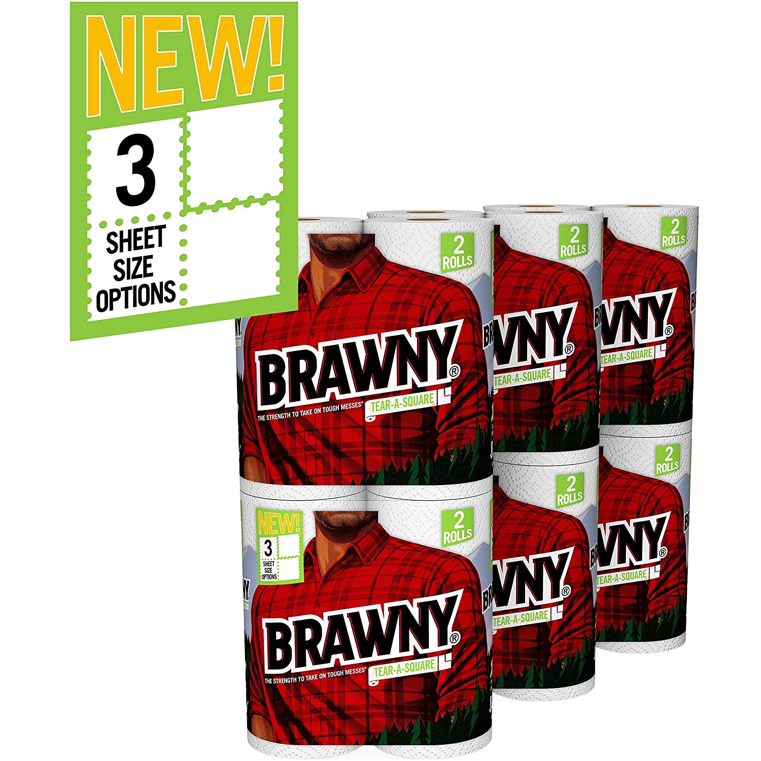 Brawny Tear-A-Square Paper Towels, 12 Rolls, 12 = 24 Regular Rolls, 3 Sheet Size Options – Link