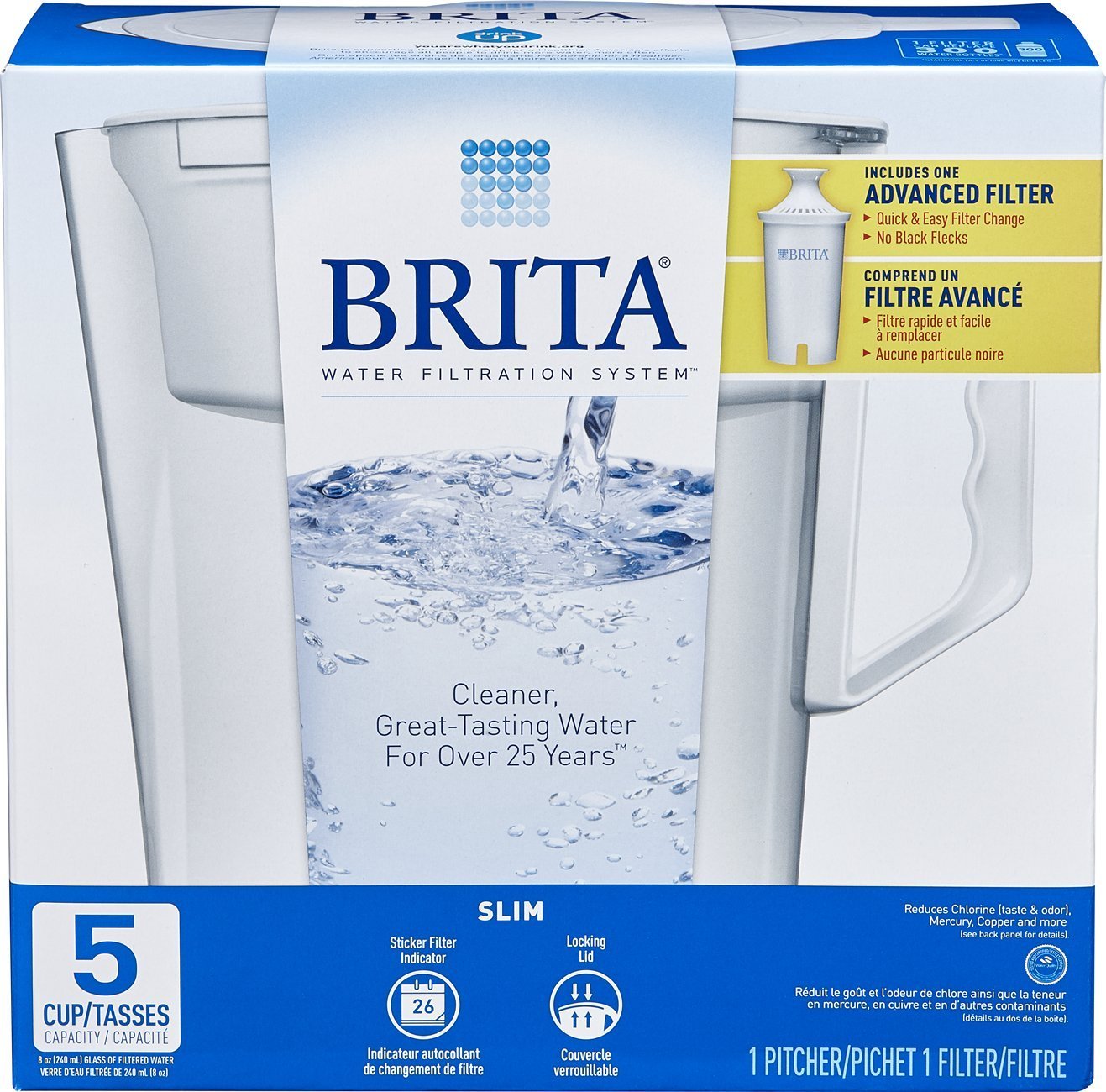 - One small, 5 cup Brita Slim Water Pitcher with 1 filter