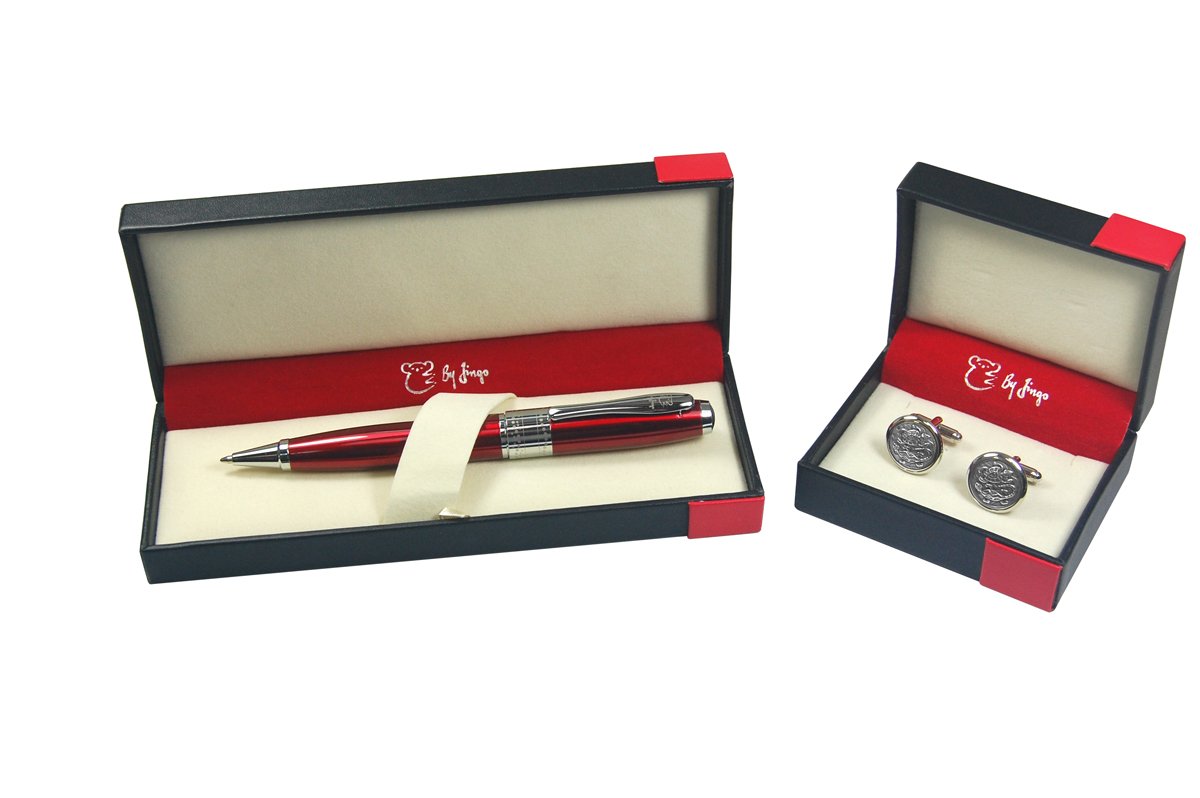 By Jingo Red Diamond Ballpoint Pen w/ Handmade Cufflinks – Link