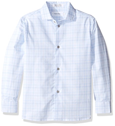 Calvin Klein Boys’ Long Sleeve Fine Line Plaid Shirt – Link